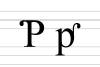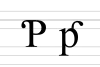 Forme de la minuscule avec le crochet au-dessus de la hampe du p. | |