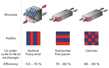 On en trouve de plus en plus dans les centrales de traitement d'air à double-flux pour récupérer l'énergie contenue dans l'air extrait avant de rejeter ce dernier dans le milieu naturel ; outre de réduire la consommation d'énergie onéreuse et les rejets de gaz à effet de serre, ça limite également le réchauffement climatique.