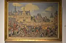 Les échasseurs sont représentés sur la Fresque des Wallons présente sur l'Hôtel de Ville de Namur.