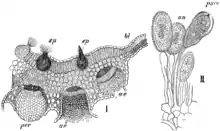 Dans le type Caeoma, le pseudo-péridium est absent ou rudimentaire. Chez Phragmidium, les sores sont entourées de cellules stériles en forme de massue, souvent à paroi épaisse nommées paraphyses. Les spores sont souvent épineuses[2],[3].
