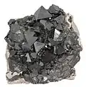 • éclat métallique : caractérisé par un fort pouvoir réflecteur (0,4 à 0,6) de la surface et une forte absorption de la lumière dans le volume du minéral. Minéraux opaques : les métaux natifs, les sulfures et sulfosels et quelques oxydes métalliques. L'indice de réfraction est 3 ou supérieur.