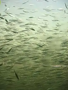 - Manipulation de l'environnement : Le choc thermique, où l'eau fraîche est alternée avec de l'eau plus chaude dans les réservoirs à circulation, peut provoquer le frai [9]. Alternativement, si des signaux environnementaux qui stimulent le frai naturel sont connus, ils peuvent être imités dans le réservoir, par exemple en modifiant la salinité pour simuler le comportement migratoire. De nombreux individus peuvent être incités à frayer de cette manière, mais cela augmente la probabilité d'une fécondation incontrôlée.