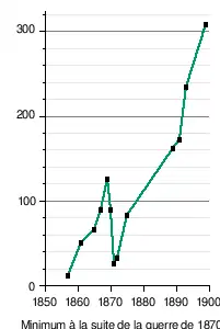 « C'est au recensement de 1846 que l'effectif de la population rurale (...) atteint son maximum (avec) 27,3 millions de ruraux qui représentent 77 % de la population totale. Par la suite, les campagnes françaises ne cessent de se dépeupler mais d'abord à un rythme très lent (...). Entre le recensement de 1846 et celui de 1911, la France des villages a perdu 4,3 millions d'habitants (avec) d'importantes disparités régionales[88]. » La population urbaine passe de 5 millions en 1851 à 18 millions en 1911, soit un triplement de la taille des villes, correspondant à un passage de 14 % à 45 % de citadins dans la population totale.
