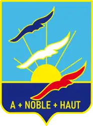 La définition héraldique de l'insigne est : « Écu moderne d'azur clair à la filière d'or et au soleil du même issant d'une terrasse d'azur foncé chargée de la devise « A + NOBLE + HAUT ». Aux trois silhouettes de mouettes d'azur, d'argent et de gueules brochant »[1].