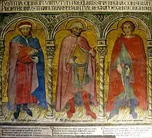 Divers peintres se succèdent dans la seconde moitié du XIVe siècle qui développent les modèles de Simone Martini et des Lorenzetti, comme l'enlumineur Niccolò di ser Sozzo (Assunta del Caleffo bianco aux Archives d'État)[11] ou Luca di Tommè (polyptyque de Sant 'Anna Metterza) qui ont signé ensemble le polyptyque de la Vierge et l'enfant entre les saints Jean-Baptiste,Thomas, Benoît et Stephane, daté de 1362.