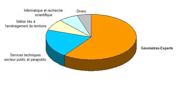 Environ 60 % des anciens élèves deviennent géomètre-expert. L'ingénieur diplômé de l'ESGT, après quelques stages professionnels complémentaires, peut s'inscrire à l'Ordre des géomètres-experts. Il devient alors un spécialiste de la propriété foncière et de la mesure topographique. Cette profession libérale permet d'accéder à des rémunérations élevées, avec en pratique une grande indépendance.