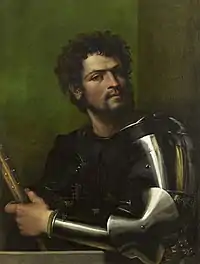 ![]() Sebastiano del Piombo (v. 1485–1547), vers 1515. Portrait d'homme en armure, 87 × 66 cm. Wadsworth Atheneum. |