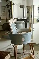 Plutôt rare dans les musées allemands : l’histoire de la lessive du nettoyage des vêtements dans les ruisseaux à la machine à laver et mangle. Dans les fermes et campagnes, le lavage à la cendre de bois, rinçage dans un ruisseau et blanchissement en étalant les vêtements dans la prairie est la coutume. Dans les villes et chez les bourgeois par contre, le nettoyage se faisait dans une buanderie et avec une corde à linge. Une machine à laver Miele de 1913 illustre ici les premières évolutions technologiques. Le nettoyage à la main et avec les machines à laver historiques est montré annuellement au mois de septembre pendant les journées des fermiers et des ouvriers.