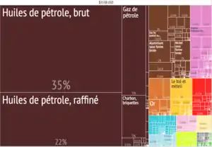 | Biens exportés | pétrole et produits pétroliers, gaz naturel, métaux, bois et produits du bois, produits chimiques et grande variété de produits manufacturés civils et militaires |