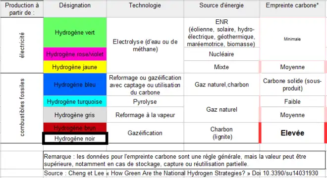 L'impact climatique de l'hydrogène dépend entièrement de la manière dont on le produit, qui peut être « propre » (décarboné), ou « sale » s'il provient d'hydrocarbures fossiles ou d'une agrochimie controversée.