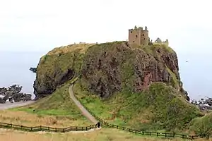 Le roi Domnall II, mort au château de Dunnottar en 900, est le premier homme à avoir été appelé rí Alban (roi d’Alba)[12] ; ceci signifiant roi de Grande-Bretagne ou d’Écosse, la signification d’Alba ayant été fluctuante à cette époque. Tous ses prédécesseurs portaient en effet soit le titre de roi des Pictes, soit celui de roi de Fortriu. Ce changement est tel dans les chroniques gaéliques qu’il est parfois considéré comme marquant la naissance de l’Écosse, bien qu’il n’y ait aucune trace du règne de Domnall II qui puisse confirmer cela. Domnall eut comme surnom dásachtach, terme qui s’applique à un fou, ou, selon la loi irlandaise de l’époque, à un homme qui n’est pas en possession de ses moyens et par conséquent sans culpabilité légale[15]. En fait, le long règne (900–942/3) du successeur de Domnall, Causantín est davantage considéré comme la clef de voute de la formation du royaume du Haut Moyen Âge d’Alba[16]. En dépit de quelques reculs, c’est lors de son règne d’un demi-siècle que les Scots repoussent tout danger d’agrandissement du territoire viking au-delà des Hébrides extérieures, des Northern Isles et de la région de Caithness.