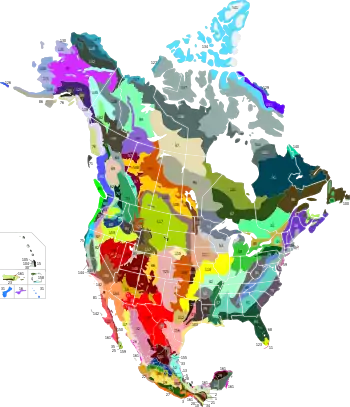 Carte des écorégions du Canada, des États-Unis et du Mexique.