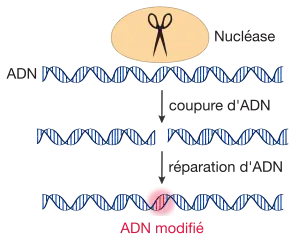 Ces ciseaux moléculaires sont des nucléases ; des enzymes de restriction qui peuvent sectionner le double-brin d’ADN à des emplacements précis, coupures auxquelles les cellules répondent par des mécanismes de réparation de l'ADN. Le principe de base des approches de modification localisée du génome consiste à utiliser ces mécanismes de réparation de l'ADN afin d'introduire des modifications génétiques. Ici, les scientifiques cherchent à exploiter les mécanismes naturels de réparation de l'ADN :