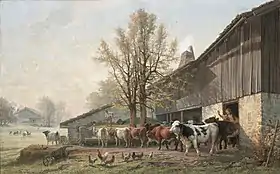 - La sortie de l'étable, 1882, huile sur toile, 142x227 cm, Musée des beaux-arts, La Chaux-de-Fonds.
