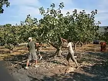 L'île d'Égine est l'un des principaux lieux de production de pistaches (2 000 tonnes par an qui font vivre près de 3 500 personnes)[26]. La culture de celle-ci est récente sur l'île, les premières plantations datent du début du vingtième siècle[27]. « Pistache d'Égine » est depuis 1994 une AOP[27], c'est d'ailleurs ainsi qu'on les appelle en Grèce. On trouve aussi sur Égine des amandiers, des oliviers et de la vigne[8],[28].