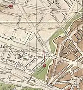Le jardin est planté de quelques arbres protégeant la vue et clos de deux grilles. Il est placé sous la garde de l'épicier Cordier, qui est promu gardien de la chapelle royale[10].