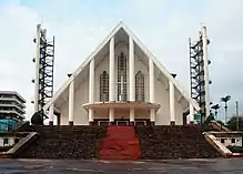 Cette église catholique de 700 à 1 000 places assises selon les sources[13],[15],[16] est la troisième plus grande du pays par le nombre de places après la basilique Sainte Anne et l'Église Notre-Dame de l'Assomption de Pointe-Noire (république du Congo). Elle aurait été entièrement financée par le chef de l'État congolais qui a remis les clefs à l'évêque Mossa le jour anniversaire de sa fille Édith. Le nom d'Édith Bongo a été donné à la cloche de l'église[15].