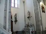 - Côté droit : les statues de saint Blaise et sainte Germaine de Pibrac, en bas, une statue de saint Joseph avec l'Enfant Jésus.