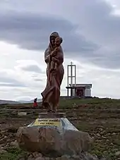 La Vierge à l'enfant, dite vierge aux phoquiers, placée au bord de la falaise a été sculptée dans les années 1950 par Félix Férioli (1878-1963) à partir d'une poutre de chêne récupérée sur une épave à Gisors dans l'Eure. En 1958, Marc Péchenart, directeur de la Société Industrielle des Abattoirs Parisiens, nouvellement implantée à Port-aux-Français, acquiert la statue auprès de la famille Férioli, et offre l'œuvre au tout nouveau territoire en souvenir de son mariage célébré quelques mois plus tôt. La statue est fixée sur un socle taillé dans un rocher à même la masse[3].