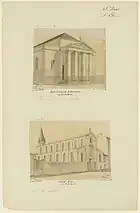 La façade très simple est pourvue en son centre d'un portique prostyle à quatre colonnes ioniques, surmonté d'un fronton triangulaire décoré d'un bas-relief par le sculpteur Jean-Jacques Feuchère et représentant les vertus théologales : au centre, la Foi qui élève le calice et l'hostie (le Saint Sacrement), à gauche, l'Espérance appuie l'ancre sur des tables rappelant le Chema Israël et à droite la Charité protège un enfant et tend un cœur brûlant vers le livre où se lit une phrase de l'hymne à la charité de saint Paul.