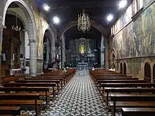 La totalité des murs de l'église sont couverts de fresques et de peintures murales réalisées par Mariano de Cossío (1880–1960). Ces peintures représentent des thèmes religieux et le triomphe de la bataille de Lépante.