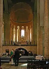 Le chœur est fermé par huit colonnes de 6 m de haut et alignées en un demi-cercle.