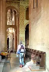 La nef est séparée du transept par une galerie transversale aboutissant de part et d'autre aux escaliers qui montent au transept.
