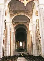 À l’origine, la nef était couverte d’une charpente. Puis on décida de la voûter, et, pour réduire la largeur de la portée, on jeta deux rangées de supports, qui déterminèrent les deux couloirs latéraux qui existent avant les autres nefs latérales proprement dites. Lorsqu’on décida, dans la seconde moitié du XIXe siècle de reconstruire la nef détruite à la Révolution, on pensa que la voûte avait consisté en une file de coupoles. D’après le témoignage d’un voyageur, Claude Perrault, l’architecte de la colonnade du Louvre, en 1669, on sait aujourd’hui que la nef était à l’origine couverte en berceau avec doubleaux.