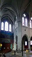 Le vaisseau central est flanqué de deux collatéraux et de chapelles latérales. Le mobilier — autels, baptistère, confessionnaux, portes — a été dessiné par Lassus.