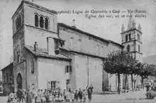 - L'église Saint-Étienne, dont le patronage datant environ du Ve siècle) permet de supposer une fondation remontant à l'époque du royaume Burgonde[31]. Si on ignore tout de sa localisation, on sait qu'elle a vraisemblablement disparu avant la fin du XIe siècle puisque que le cartulaire de Saint Hugues n'en fait pas mention. La donation laisse entendre qu'en 1030 cette église était déjà désaffectée ; les abandonnataires des biens de Vif ont certainement dû supprimer l'église Saint-Étienne à cause de divers problèmes matériels dont celui de pérennité de l'église paroissiale principale, Saint-Jean-Baptiste[31].