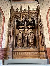 Le lieu de culte recevra cependant encore divers embellissements avant 1914. Pose de vitraux de Friedrich Goll (de) de Lucerne, tandis que le superbe nouveau retable (mémorial Sankey) date de 1912. Cette Crucifixion en bois sculpté provient de Bruges et est due au ciseau d'Alphonse de Wispelaere, qui est l'auteur également du retable en bois massif de l'église anglicane de Caux[7].