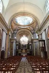 La particularité la plus notable reste l'emplacement du chœur des religieux qui se trouve derrière le maître-autel, ce dernier étant placé dans la première travée du chœur, juste après la croisée qui est dominée par la coupole. Une disposition qui favorise la visibilité optimale des fidèles en direction du maître-autel et préservant le recueillement des religieux qui pouvaient entendre la messe.