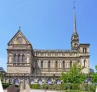 La nouvelle église est construite sur l'emplacement de l'Université luthérienne de Montbéliard. Pour ce faire, les ailes sud, est et ouest ont été détruites afin de libérer de la place[2].