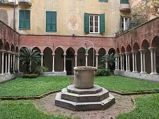 Sur le côté gauche de l'église se trouve le cloître, de plan quadrangulaire, datant de 1308. Il possède des arcs ogivaux sur double colonnettes et, en son centre, un petit puits. Le long des murs de la loggia, de nombreuses pierres tombales de la famille Doria. Depuis 2004, l’ancien cloître est devenu le siège de l’Ordre des architectes, urbanistes, paysagistes et défenseurs de l’environnement de Gênes.