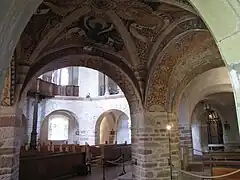 L'abbesse d'Ottmarsheim, Élisabeth de Blumeneck, fait réaliser vers 1460 des peintures murales dans le chœur dédié à saint Pierre, à l'étage des tribunes.