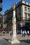 La place Saint-Projet était au Moyen Age une place animée par un marché. Il y eut, au centre une fontaine. Elle prenait ses eaux à la source d’Arlac, du côté de Mérignac. Aujourd'hui la fontaine est adossée contre un immeuble. La sculpture réalisée en 1737, est de Michel Van der Woort. Au-dessus du fronton triangulaire, l’homme et la femme représenteraient les deux rivières traversant Bordeaux : le Peugue et la Devèze. Sous le cartouche de marbre rouge, est figuré, un trophée maritime composé de proues de navire, gouvernail, trident, harpons et corne d’abondance.