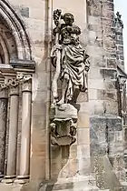 Une statue monumentale de Christophe offerte par la famille Schlüsselfelder, dont l'original datant du XVe siècle est au Germanisches Nationalmuseum. Le nom de « Schlüsselfelder » est indiqué sous le piédestal avec le blason comportant trois clés (« clé » se dit « Schlüssel » en allemand), porté par deux angelots. La statue se trouve à l’angle de la façade Ouest et du mur Sud.