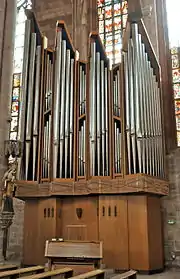 L'orgue détruit pendant la guerre, du facteur d'orgue nurembergeois Johannes Strebel (de) datait de 1906 et avait deux claviers et un pédalier. En 1947, un orgue provisoire est installé, et après la reconstruction du mur Sud, cet orgue est étendu. L'orgue actuel est installé à la même place en 1975-1976 par le facteur Willi Peter (de) de Cologne. L'orgue principal possède 71 registres, et a trois claviers et un pédalier. Un autre orgue, mobile, a 12 registres, un clavier et un pédalier. Les deux orgues sont équipés de commandes électroniques modernes[4].