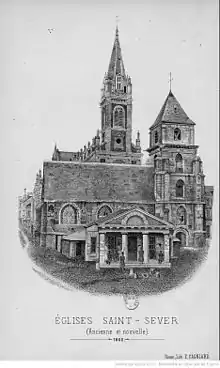 - « Église Saint-Sever. Pose et bénédiction de la première pierre », Journal de Rouen, 14 avril 1857.