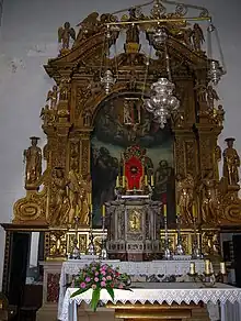 Elle a été érigée sur les fondations d'une petite église médiévale. La nef avec sa voûte gothique a été construite par l'architecte Juraj Lukačević en 1465. On a ajouté un espace à trois nefs en 1581 à la place de son sanctuaire (inscription glagolitique sur le fronton). L'imposant maître-autel baroque en bois massif doré du XVIIe siècle est orné d'un retable gothique paré en sa niche au centre d'un tableau Renaissance du XVe siècle représentant la Vierge à l'Enfant. Ce tableau provient d'un polyptyque attribué à l'artiste dalmate Juraj Ćulinović. On suppose que le tableau du Christ crucifié, à droite de l'autel, appartenait au même polyptyque. Les autres autels étaient aussi en bois qui furent remplacés en 1830 par du marbre.