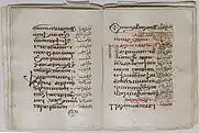 L'Église copte catholique utilise le rite copte, un rite de la famille liturgique alexandrine au même titre que le rite guèze pratiqué par l'Église catholique éthiopienne et l'Église catholique érythréenne. Les intellectuels coptes catholiques comme Raphaël Toukhî ont largement contribué à la recherche et à l'établissement de livres liturgiques fiables dans ce rite, notamment grâce aux moyens d'impressions comprenant des caractères coptes fournis par la Typographie Polyglotte de la Propaganda Fide établie en 1626, et la Typographie Médicéenne de l'orientaliste Giambattista Raimondi, fondée par Ferdinand Ier de Médicis, cardinal et duc de Toscane, au début du XVIIe siècle[13]. Les influences latines, comme la dévotion au Sacré-Cœur, ont fortement imprégné la piété des fidèles, mais un effort de délatinisation de la liturgie est promu par le clergé dans la ligne du décret Orientalium Ecclesiarum du Concile Vatican II.