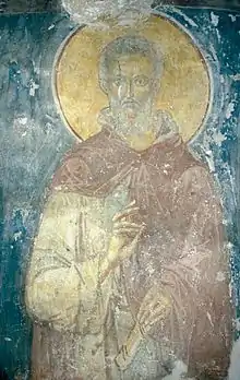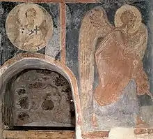Il reste un sujet religieux dans ces peintures qui est la représentation des saints : sur les murs ouest est représentée la scène de l'apparition de l'ange à Pacôme le Grand, sur les piliers des côtés ouest : Éphrem le Syrien et Sabas le Sanctifié.