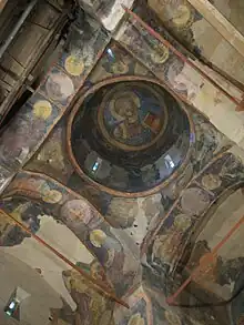 Sur la voûte de l'abside, on trouve l'image de la Vierge entourée de deux anges. C'est une image de type Orante mais avec l'enfant Jésus sur ses genoux. Une petite composition est située au nord de la partie réservée à l'autel, au Jertvennik. Certaines figures sont bien conservées : celles de Basile de Césarée et de Jean Chrysostome et l'ange-diacre avec Ripidion.