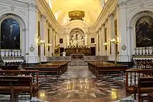 Angelo Viva est également d'auteur des sculptures de stuc au-dessus du maître-autel représentant La Trinité[5], et Paolo de Matteis, de deux tableaux figurant Saint Joseph à l'Enfant. D'autres tableaux sont attribués à des peintres de l'école de Giuseppe Bonito. Francesco Fracanzano est l'auteur de La Mort de saint Joseph (1652). Le chœur datant de 1754 est l'œuvre de Giovanni Antonio Medrano et remarquable par sa décoration fort riche également en stuc, avec des chapiteaux corinthiens.