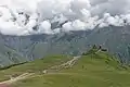 Panorama à 360° de l’église d’altitude de la Trinité du village de Guerguéti, du mont Chani (ou Gora Chan) et du mont Kazbek.