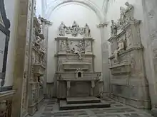 L'antisacristie voit à droite un escalier avec sur les murs le tombeau de Giovan Battista Cicara par Andrea Ferrucci da Fiesole, de 1504-1507, et le tombeau d'Andrea Bonifacio de Bartolomé Ordóñez de 1518-19, à gauche, les deux monuments avec deux épigraphes de Jacopo Sannazzaro. De l'escalier, il est possible d'atteindre les cloîtres du complexe et donc, à travers un couloir du XVe siècle, il est possible de descendre à l'église inférieure.
