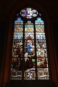 Sa façade remaniée sous Louis XV a été reconstruite à la fin du XIXe siècle en pastiche du style du XIVe siècle. Le tympan du portail est une mosaïque de 1926 de Guibert-Martin représentant les Archanges. Le vaisseau à 5 travées est recouvert d'une charpente d'origine œuvre de Jacques de Chartres, charpentier du roi. Le décor d'origine a disparu. Les vitraux représentant les Apôtres ont été remontés en 1824 à l'église Saint-Séverin[6]