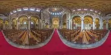 - Pour la nef, le dôme et le chœur, l'architecte tentait de faire revivre un style roman tirant vers le byzantin, tel qu'il pouvait l'admirer à l'église Saint-Michel de Hildesheim.