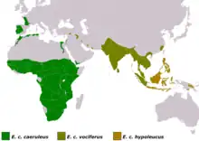 - E. c. caeruleus (Desfontaines, 1789) : sud-ouest de la péninsule Ibérique, Afrique et sud-ouest de la péninsule Arabique ;