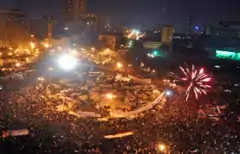 Hosni Moubarak s'exile à Charm el-Cheikh le 11 février après avoir remis le pouvoir à l'armée. Omar Souleiman, le vice-président et Mohamed Hussein Tantawi, président du Conseil militaire suprême, assurent l'intérim et promettent que l'armée rendra le pouvoir à un gouvernement civil et démocratique. Le rôle de l'armée pendant la révolution, qui était restée neutre, la rend légitime pour assurer cette mission.